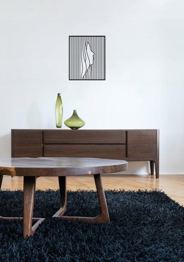 Praturtinkite savo namus unikaliu ažūriniu paveikslu, padengtu prabangiu juodu veliūru. Šis minimalistinis ir stilingas kūrinys suteiks bet kuriam interjerui išskirtinio žavesio ir modernumo.